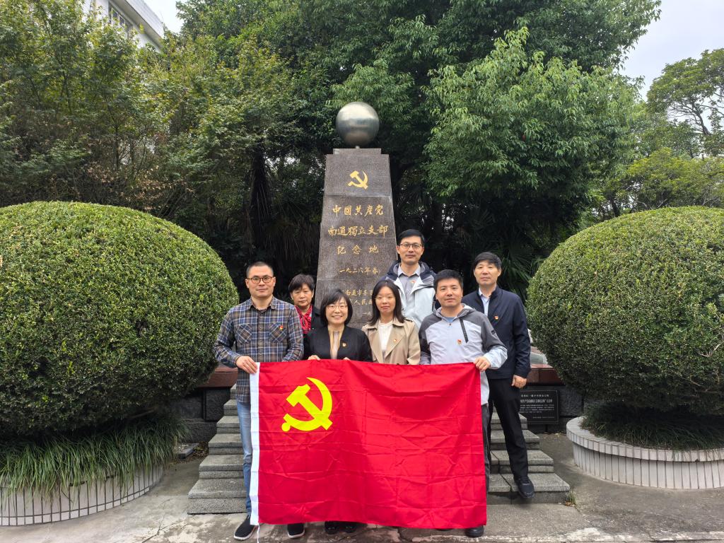 在中共南通独立支部纪念碑前合影