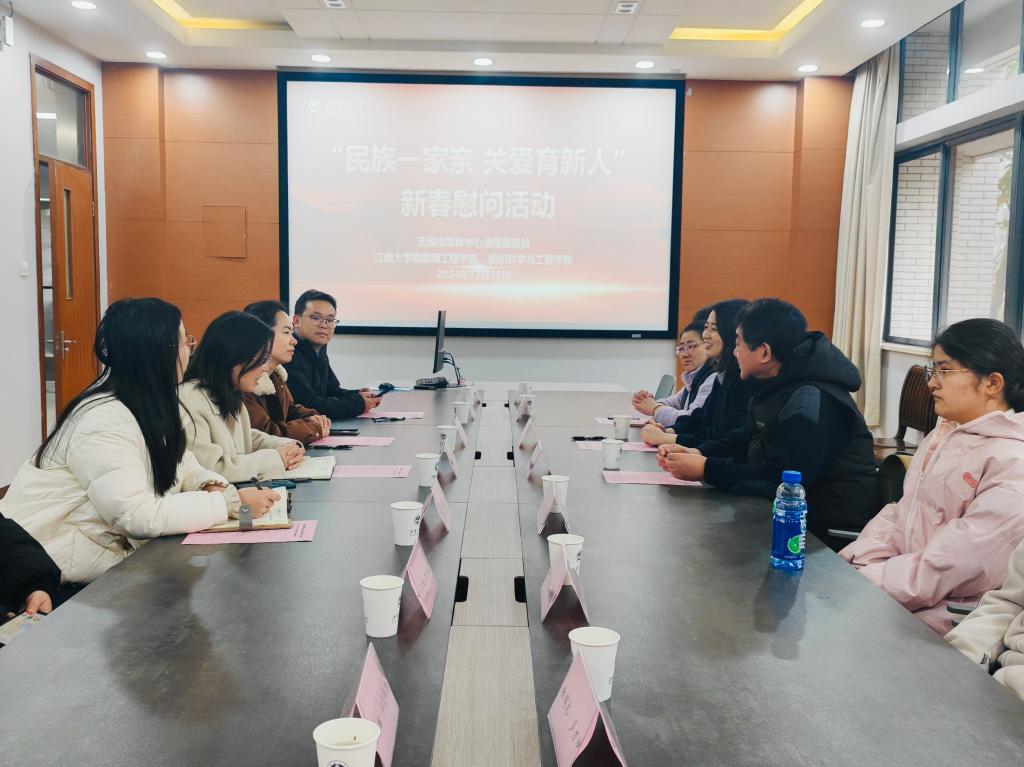 、物联网工程学院举办“民族一家亲,关爱育新人”新春慰问活动。无锡市军休中心清扬服务站副站长蔡淑野,军休干部代表王小进,无锡市军休中心清扬服务站站员朱佳,色情导航
