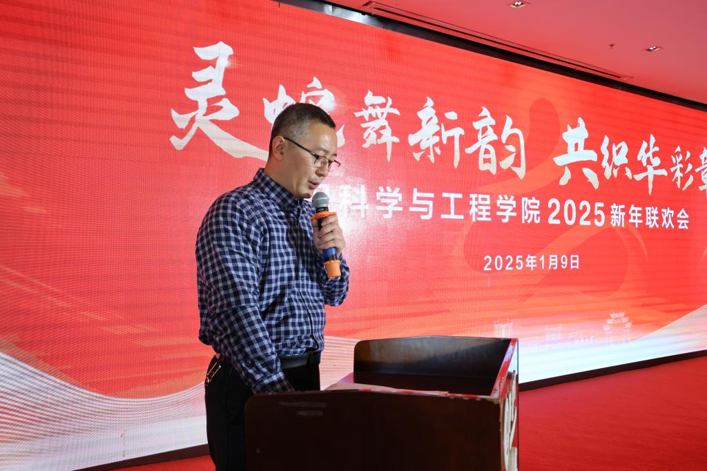 联欢会在付少海的学院工作报告中拉开序幕。他分享了学院在教学科研、人才培养、社会服务等方面取得的成绩,特别强调了2024年学院各项成果丰硕,这一切都离不开全体教职工的辛勤付出和无私奉献。他勉励大家在新的一年里,再接再厉,携手同行,共创更多佳绩,共铸更多辉煌。