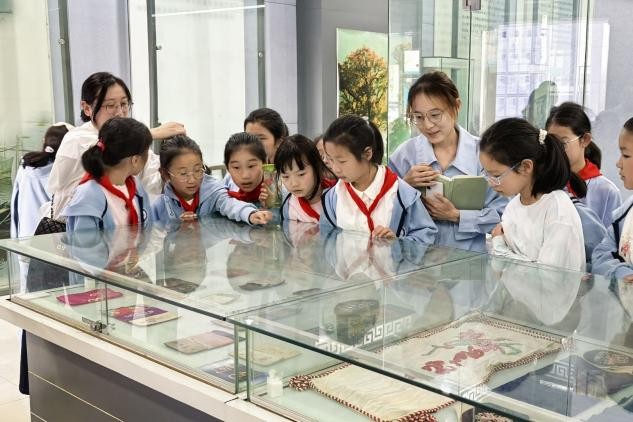 活动尾声,学生们走进学院民族服饰传习馆,近距离观赏历代纺织机械、原料及成品。展柜中陈列着丝绸、云锦等珍贵织物,配合讲解员的生动讲述,勾勒出纺织文明的历史长卷。