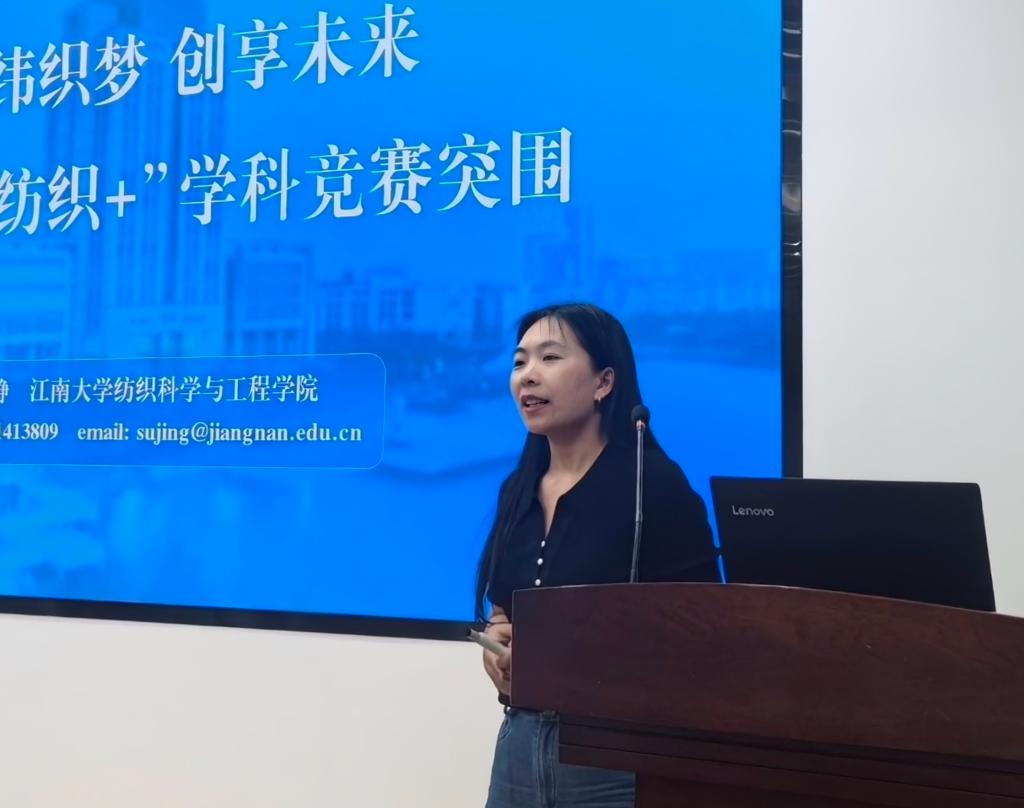 苏静结合个人指导竞赛的经验,以“纺织+”为切入点,着重讲解与专业紧密相关的各类学科竞赛,围绕明确参赛目标、合理组建团队、高效分工合作等要点深入剖析学科竞赛的准备策略与实施过程。她强调,竞赛获奖并非一蹴而就,而是需要“十年磨一剑”的耐心与勇气,鼓励同学们勇于尝试、坚持不懈。