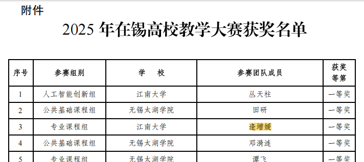 近日,由无锡市教育局高等教育处主办的“2025年在锡高校教学大赛”评选结果揭晓。经过激烈角逐,色情导航