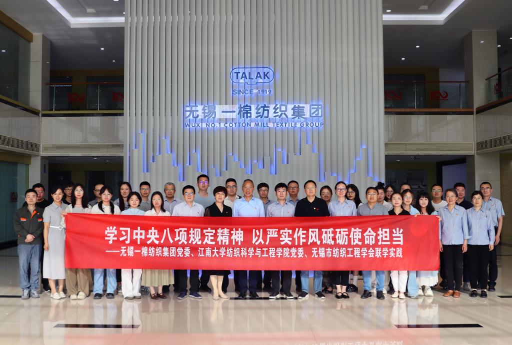 党委常委、党委统战部部长、工会主席朱飞,学院党委书记张菁燕,无锡市纺织工程学会、学院教授王鸿博,以及学院党委委员、师生党支部书记纺织所教师党支部成员等30余人参加活动。无锡一棉纺织集团党委书记、董事长蔡赟等热情接待了校院师生,活动由无锡一棉纺织集团党委副书记、纪委书记、工会主席糜娜主持。
