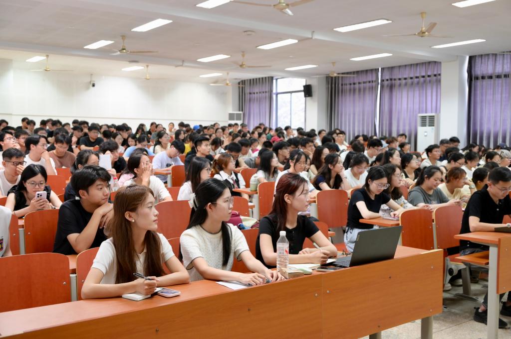 副院长刘庆生、实验室主任晋阳,图书馆学科服务与咨询部馆员张娣,2025级研究生辅导员张旭及全体研究生新生参加活动。活动由张旭主持。