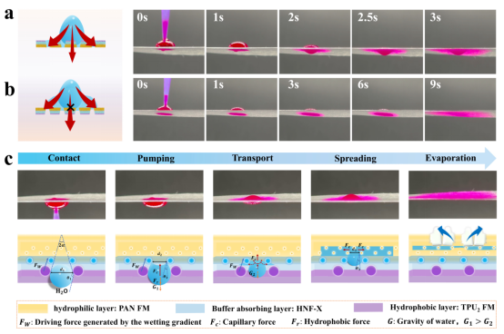 在“健康中国”战略推动全民健身与“轻户外”生活方式蓬勃兴起的双重背景下,单向导湿功能纺织品的重要性日益凸显。通过构建皮肤表面的“动态干爽区”,主动将汗液迅速排出体外,从而有效防止因汗液滞留导致的失温风险,为大众运动安全与舒适提供保障。然而,目前该类产品在实际应用中仍面临关键技术瓶颈:由于表面蒸发性能不足,导致水分传导效率显著降低,使穿着者产生明显的湿热感和粘腻感,整体舒适度欠佳。这一问题在专业运动员高强度训练或比赛场景中尤为突出——大量汗液无法被及时有效地导出和蒸发,严重阻碍人体散热调节,不仅影响体温平衡,更直接制约运动表现的稳定性与持续性。