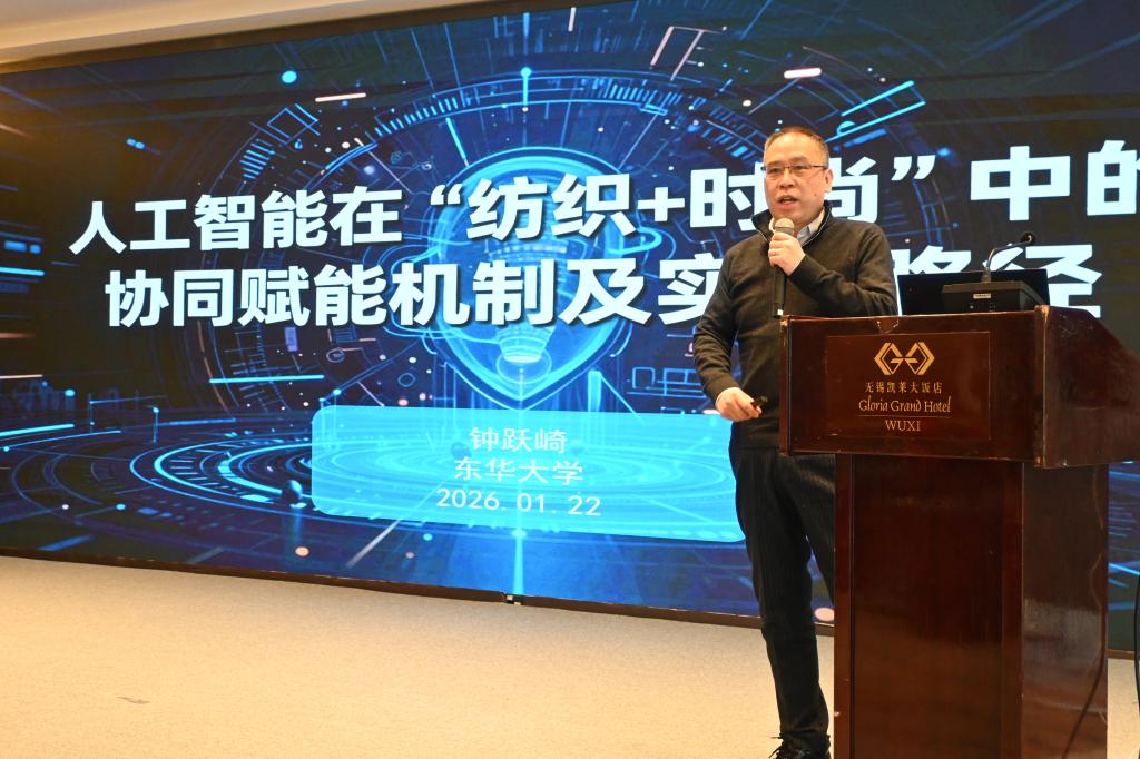 潘如如主持了学术报告环节。东华大学钟跃崎教授作了题为《人工智能在“纺织+时尚”中的协同赋能机制及实践路径》的报告,深入剖析了AI技术为产业融合带来的新机遇;江苏格罗瑞节能科技有限公司张永焱高工作了《纺织工业软件发展的必由之路:从数字化到智能化》的报告,系统阐述了软件自主化与智能化升级的战略方向;中原工学院杨红英教授则以《纺织色彩的数字化与软件化——色准·高效·协同》为题,分享了色彩领域技术变革的前沿实践。