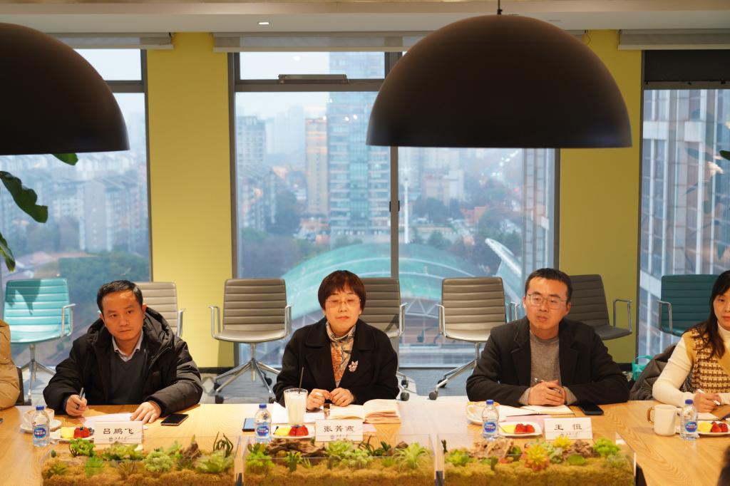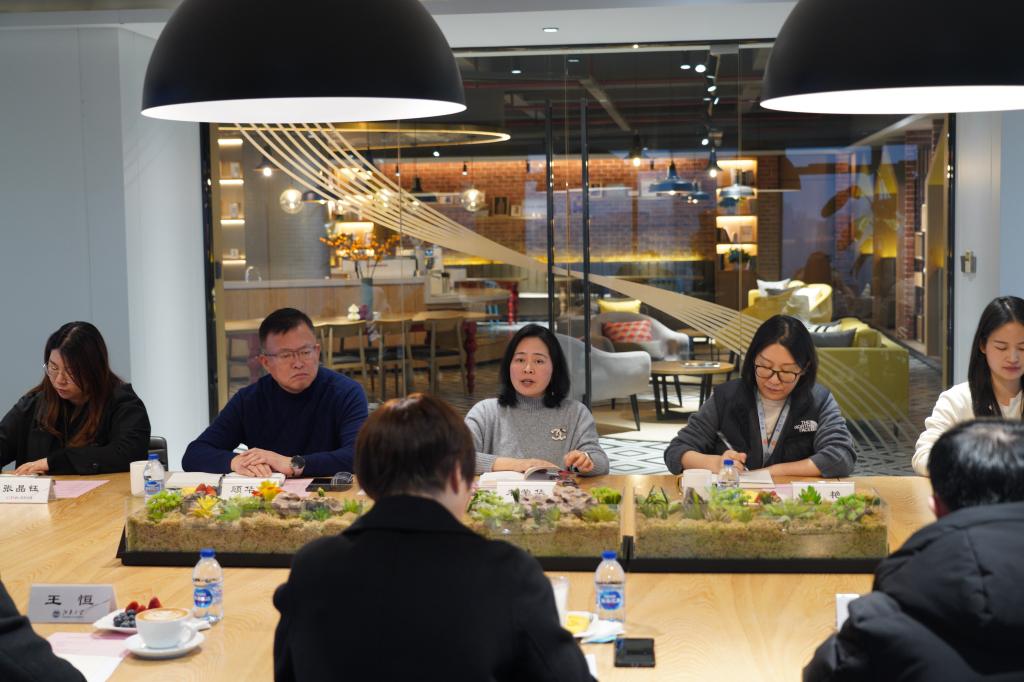 张菁燕代表学院对华盛公司长久以来在合作育人方面给予学院的支持表示衷心的感谢。她提出,希望双方依托国家卓越工程师计划推动人才培养一体化,开展更高水平的人才培养合作。同时,也希望进一步深化院企产学研合作,以“揭榜挂帅”等方式,与国泰华盛一道共同推进绿色低碳等材料研发,为产业可持续发展注入新动能。随后,校友代表介绍了在国泰华盛工作情况,与会人员进行了坦诚而富有成效的交流。