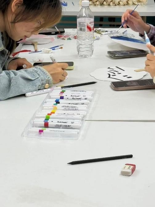 在梅园一站式社区举办“心线绘空——绘春计划”主题活动。同学们以油纸伞、宣纸团扇为纸,以色彩为笔,在一笔一画间与春日相遇,与内心对话。