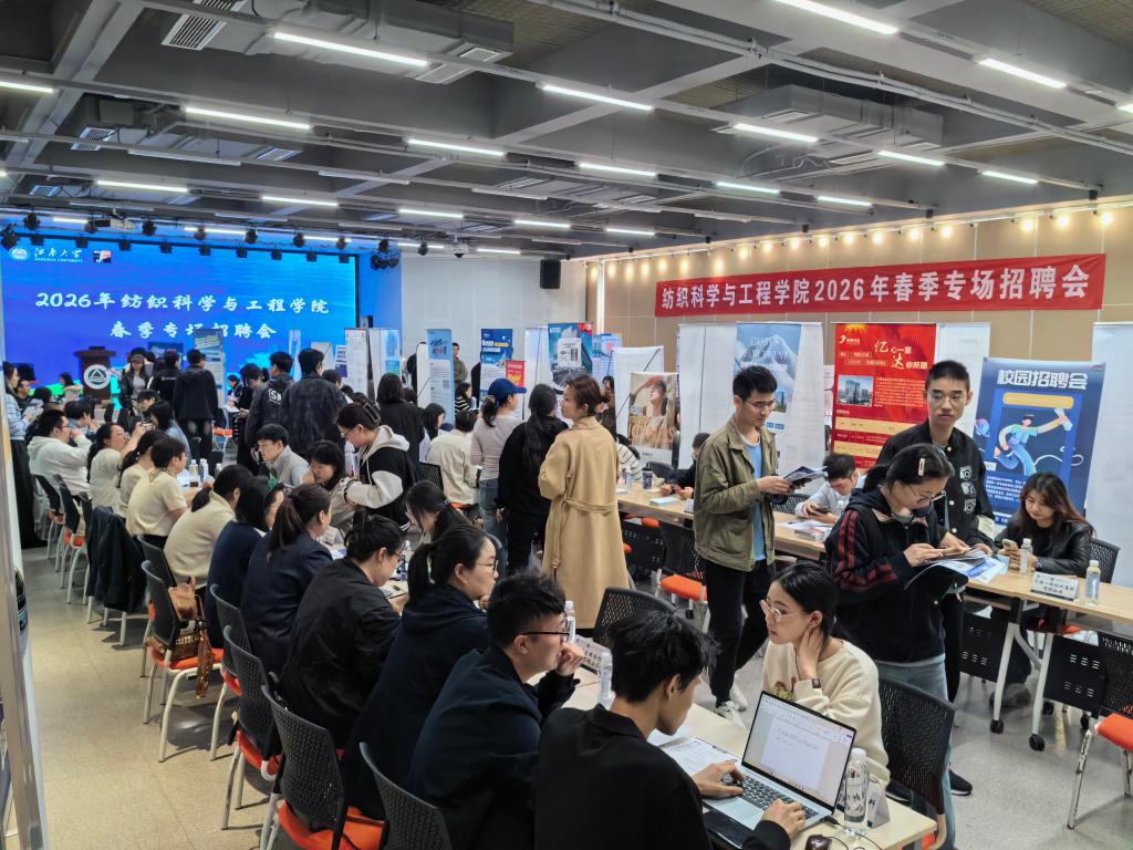 本次招聘会共吸引61家优质企事业单位参会,包括中国资环绿纤、无锡一棉、江苏联发、江苏国泰等行业龙头、上市公司、高新技术企业,以及10余家心系母校发展的校友企业,覆盖纺织、服饰、化学化工、专业设备制造、文化教育、互联网服务等多个行业领域,累计提供就业岗位超过100个,人才总需求达400余人。招聘现场人头攒动、氛围热烈,展位布置井然有序。各企业通过召开宣讲会、发放宣传折页、面对面交流等方式,向毕业生详细介绍企业经营情况、岗位要求、薪资待遇等情况,积极吸纳优秀人才。同学们主动与企业沟通,就岗位职责、薪资待遇、成长空间等关切问题深入咨询。企业代表耐心回应,详细解读招聘政策与企业发展规划,现场互动频繁、暖意融融。