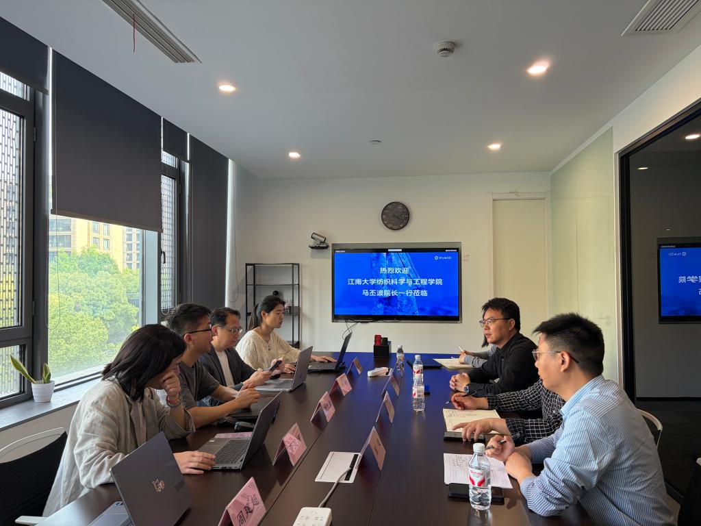 院长马丕波率队赴浙江凌迪数字科技有限公司开展专题调研与座谈交流。学院副院长刘庆生、纺织系主任周建及院长助理吕婧参加活动,凌迪科技董事长刘郴、事业部总经理董灵丽、工程师骆立康及相关部门负责人热情接待并参与研讨。