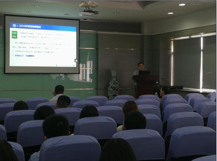 潘如如副院长首先作学院2016年青年教师科研情况报告,他从科研项目、发表论文、授权专利三个方面分析了色情导航