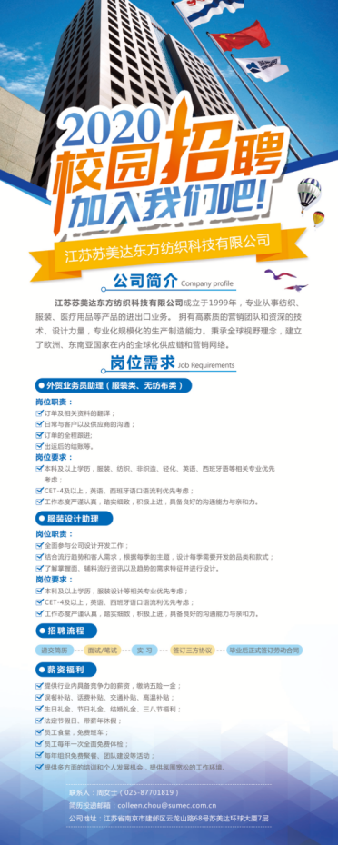 1、本科及以上学历,服装、纺织、非织造、轻化、英语、西班牙语等相关专业优先考虑;